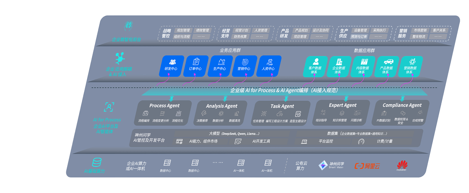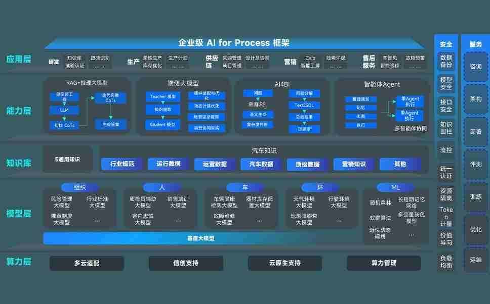 端到端的一站式AI工作空间深度融合了从企业战略规划到日常经营的全流程业务板块,,定向解决车企内部领域多、、、部门多、、、、链条长、、场景碎片化等难题,,,,支持车企快速构建以AI为核心的生产力写作体系,,,,实现任务执行与AI能力的无缝集成与交互